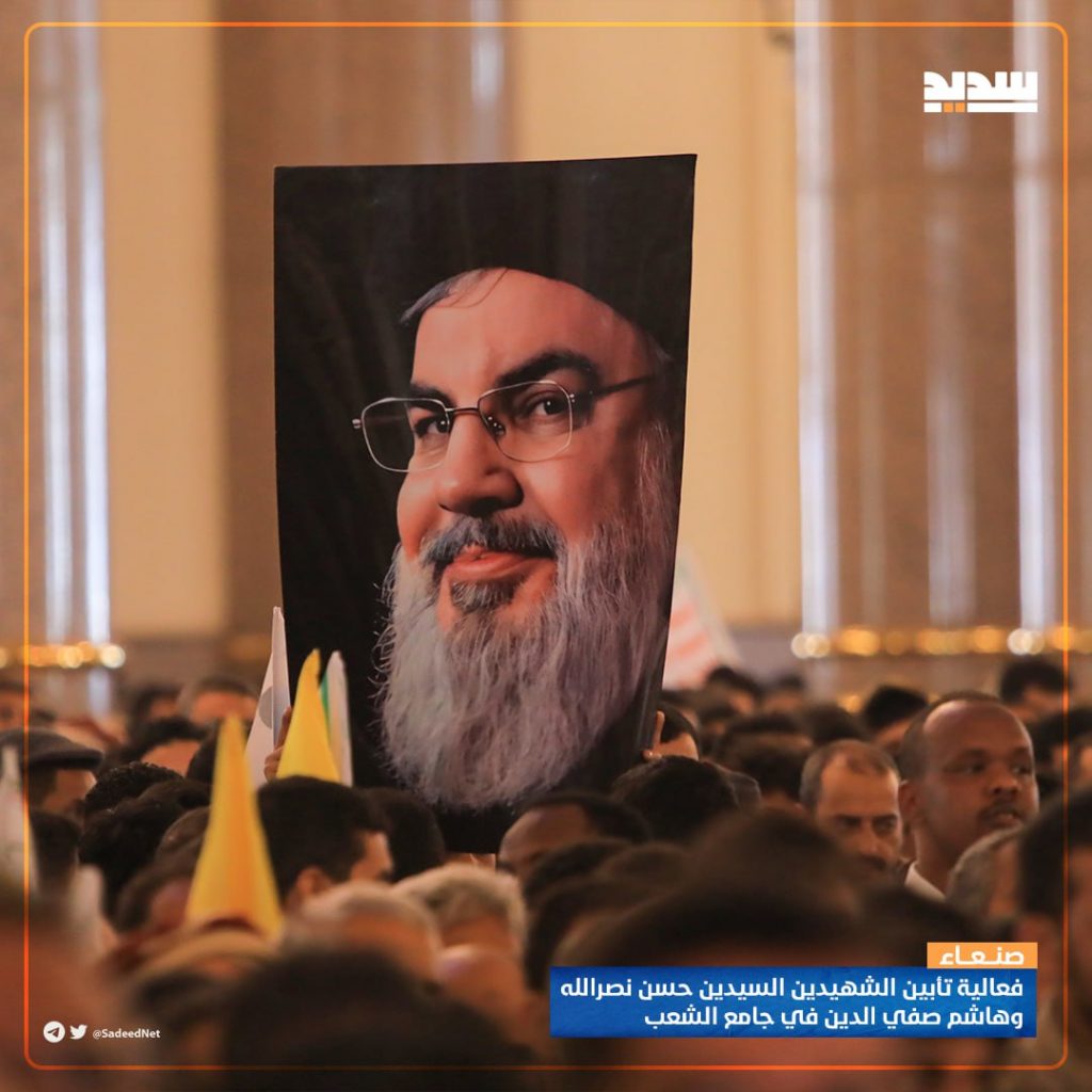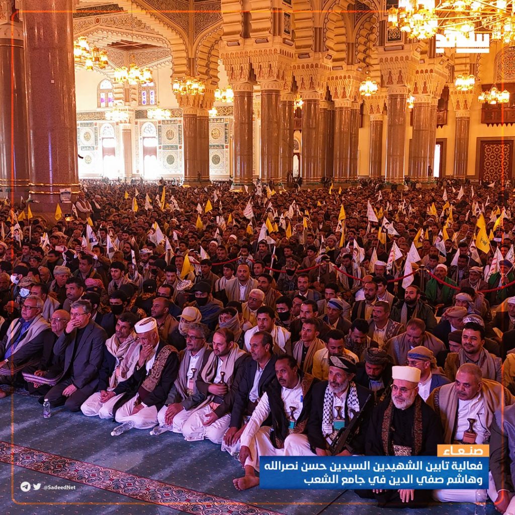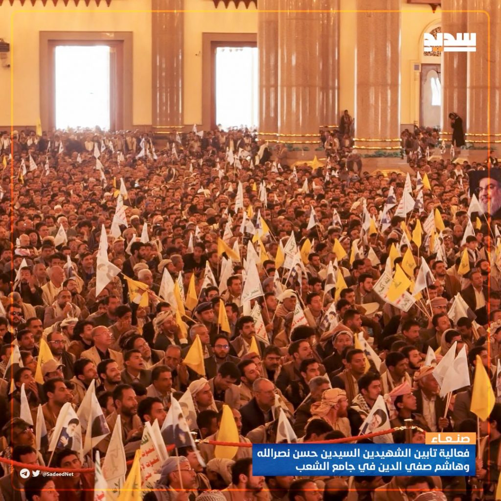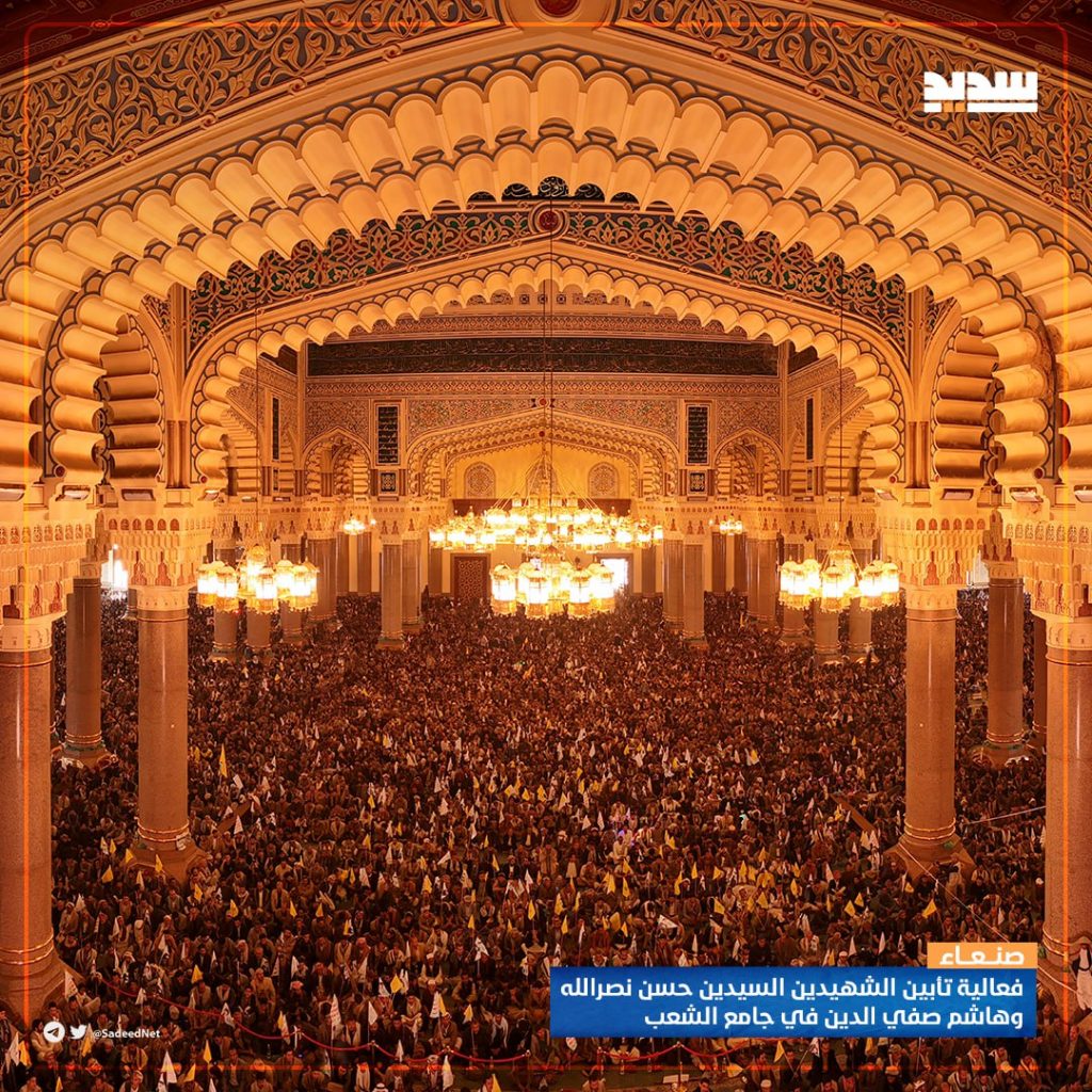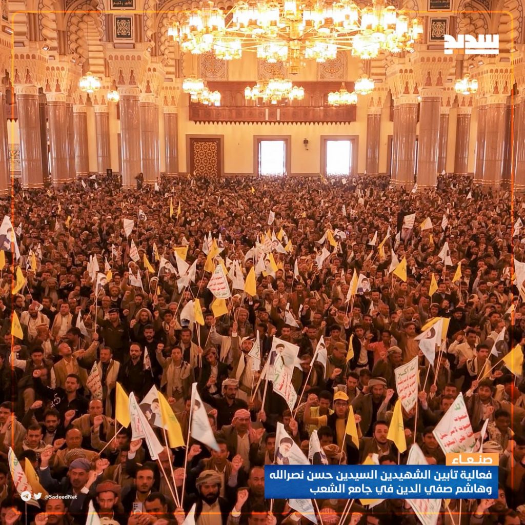 بالصور/ حضور رسمي وشعبي كبير… فعالية تأبين الشهيدين السيدين نصرالله وصفي الدين في جامع الشعب بالعاصمة صنعاء