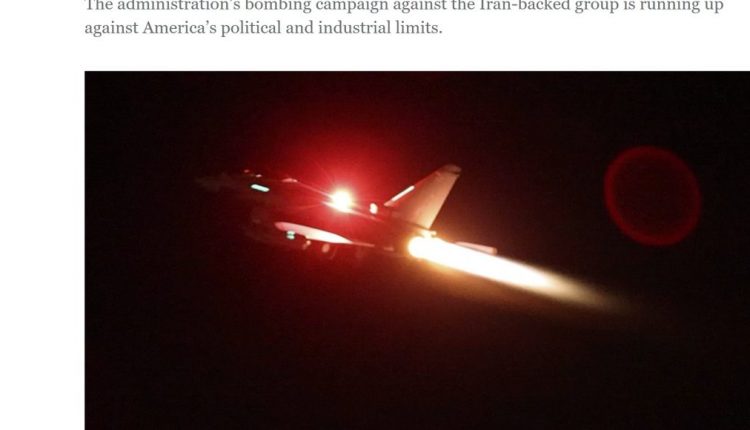 وأبرز التقرير أن “حملة القصف الحالية قد تؤدي إلى إجهاد إمدادات الأسلحة الأمريكية، التي تواجه بالفعل ضغوطًا بسبب شحنات الأسلحة المستمرة إلى أوكرانيا، والدعم العسكري لإسرائيل، وجهود واشنطن السابقة ضد الحوثيين”.