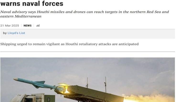 نقل موقع “لويدز ليست” البريطاني عن مركز المعلومات البحرية الغربي المشترك التحذير من أن الطائرات المسيّرة والصواريخ التابعة للجيش اليمني باتت قادرة على الوصول إلى أهداف في أقصى الشمال، بما في ذلك شرق البحر الأبيض المتوسط.