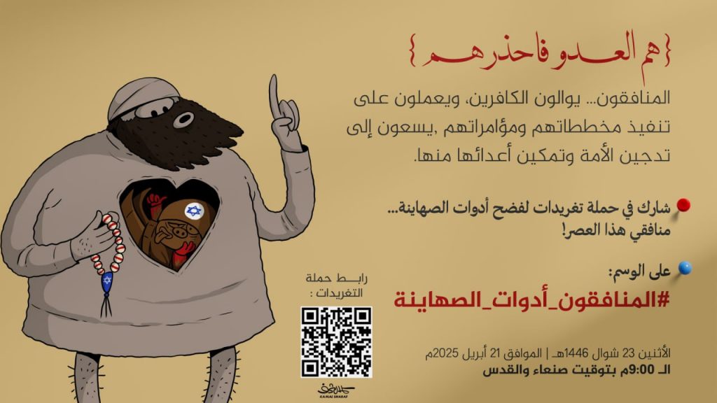 ودعا منظمو الحملة، إلى المشاركة الواسعة في الحملة لفضح أدوات الصهاينة… منافقي هذا العصر على هاشتاق: