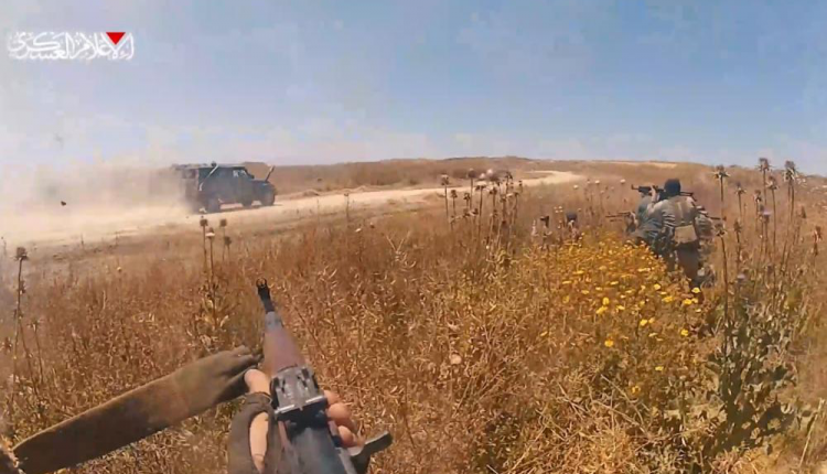 وأظهر الفيديو عددا من عناصر “القسام” يخرجون من عين نفق بمنطقة مفتوحة على شارع العودة “جكر” شرق بيت حانون، قبل أن يهاجموا جيباً عسكريا من نوع “ستورم” بقذيفة مضادة للمدرعات، وإطلاق النار تجاهه من النقطة صفر وانقلابه بمن فيه.