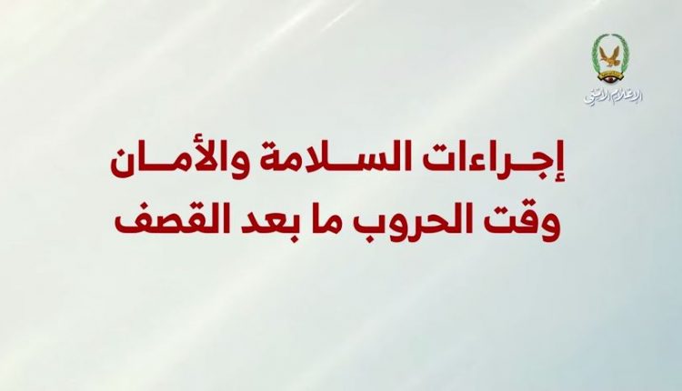 شاهد/ إجراءات السلامة والأمان وقت الحروب ما بعد القصف (فيديو) On أبريل 23, 2025 الصمود| فيديو https://www.alsomoud.com/wp-content/uploads/2025/04/إجراءات-السلامة-والأمان-وقت-الحروب-ما-بعد-القصف.mp4 مشاركة