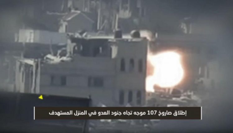 ويظهر في الفيديو استهداف سرايا القدس المنزل بصاروخ “107” وإصابته إصابة مباشرة في حي التفاح شرقي غزة.