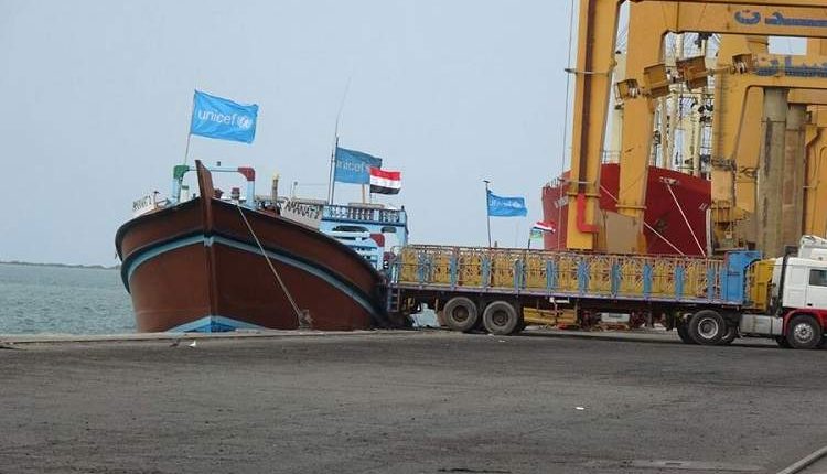 ووثقت وائل اعلام رسو سفن الشحن في أرصفة الميناء وتفريغ حمولتها بعد معالجة أضرار العدوان.
