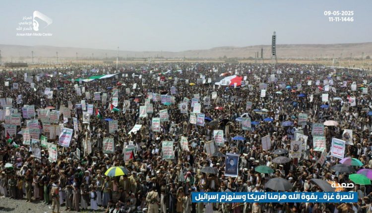 36 مسيرة حاشدة بصعدة شكرًا لله واحتفالًا بهزيمة أمريكا ونصرة لغزة