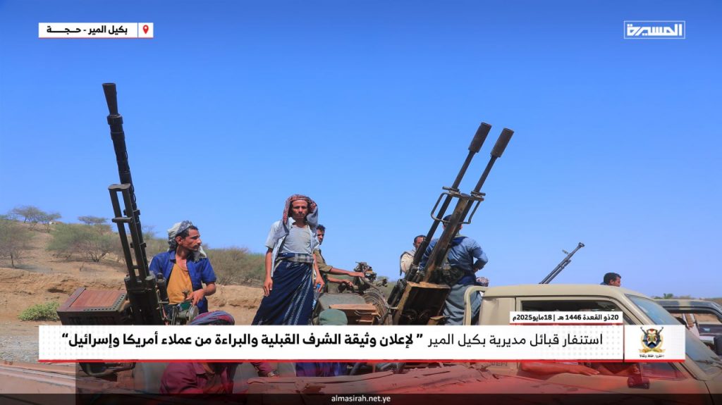 بالصور/ استنفار قبائل مديرية بكيل المير بحجة لإعلان وثيقة الشرف القبلية والبراءة من عملاء أمريكا وإسرائيل On مايو 18, 2025 الصمود| صور مشاركة