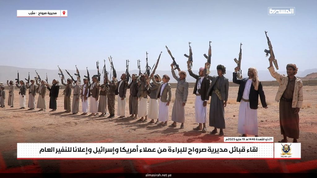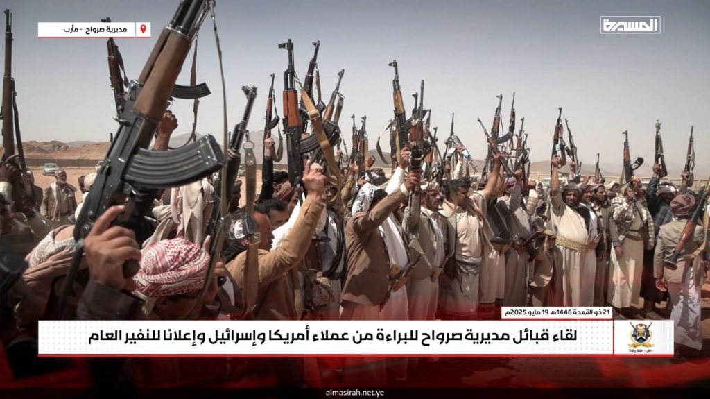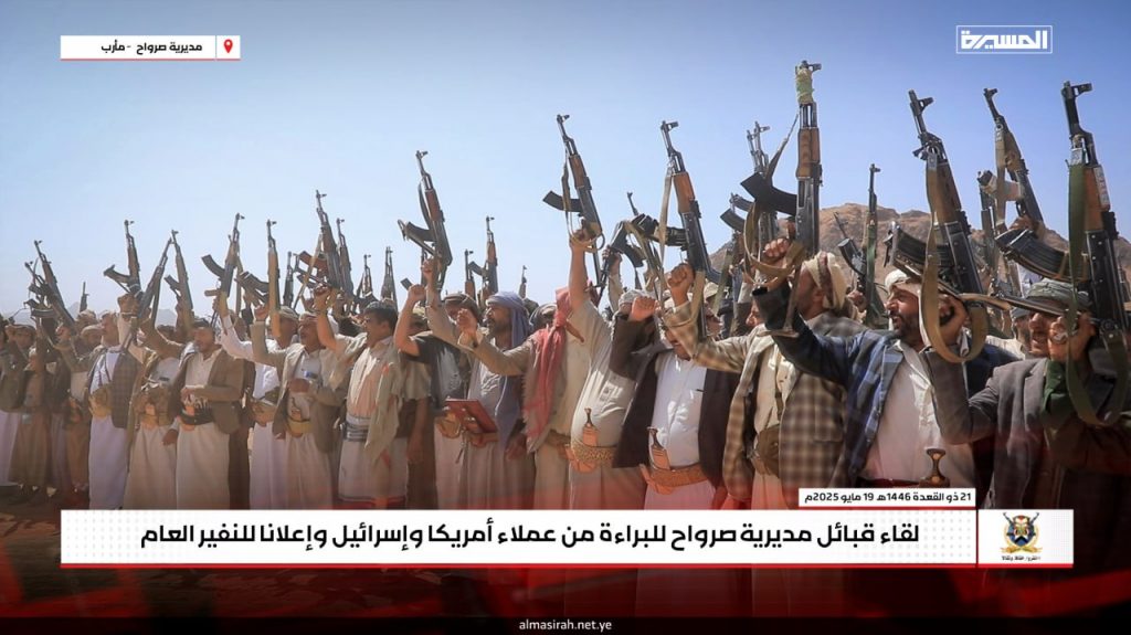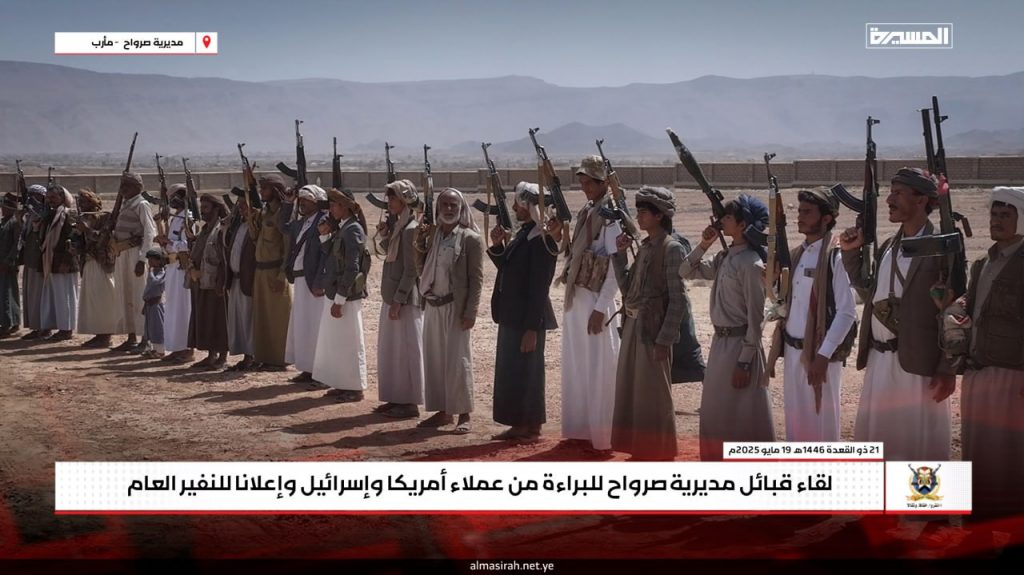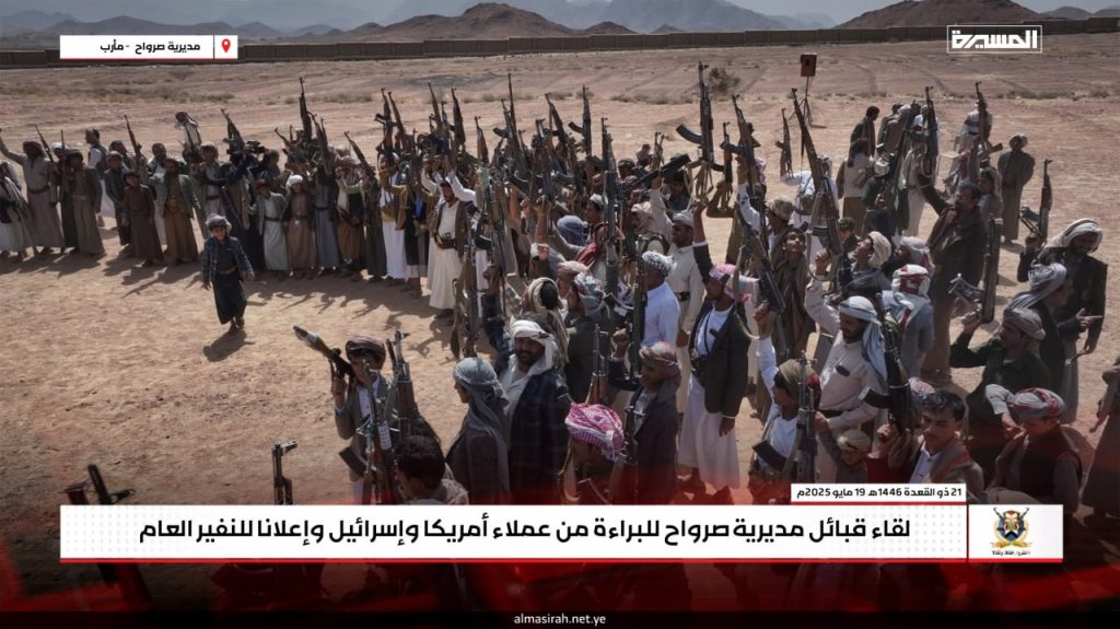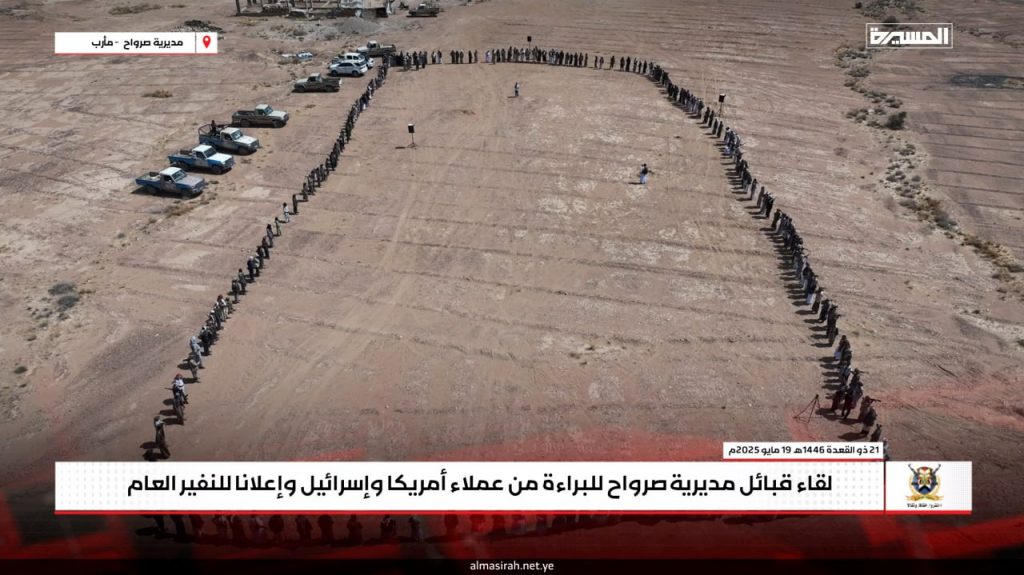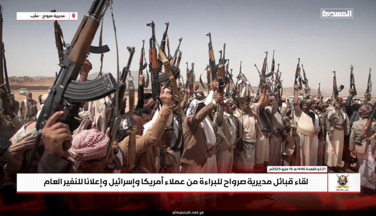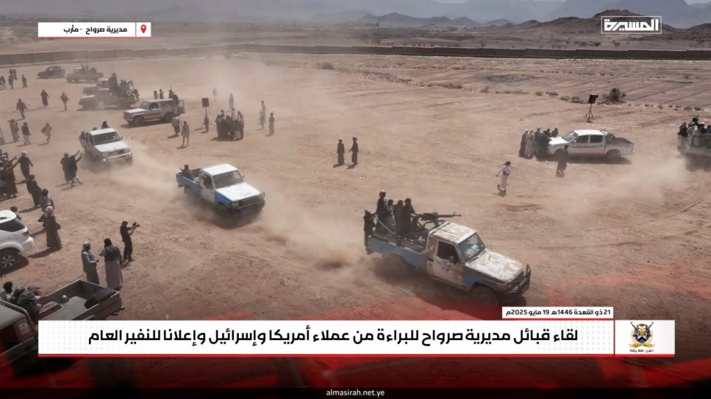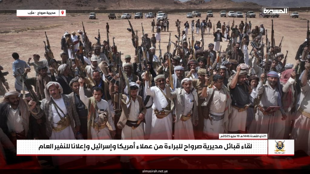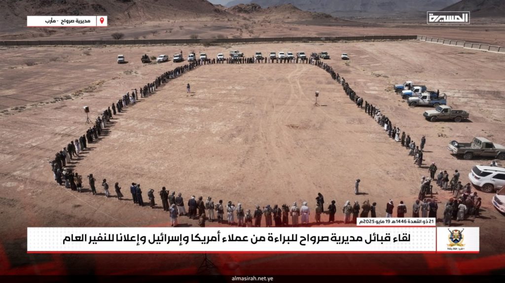 أعلنت قبائل جهم وعيال سعيد في مديرية صرواح بمحافظة مأرب اليوم، النفير العام لمواجهة العدو الصهيوني، والبراءة من العملاء والخونة.