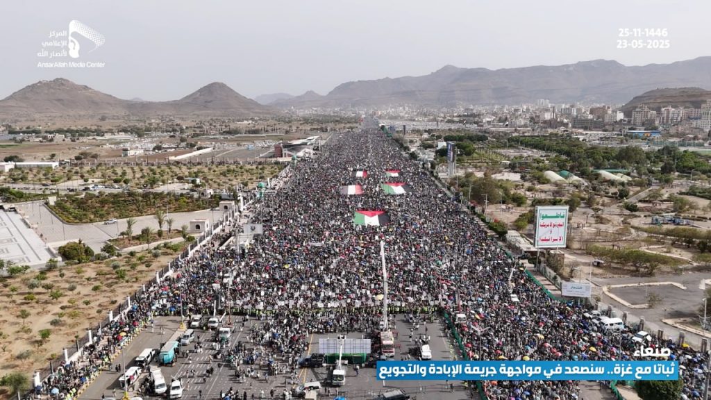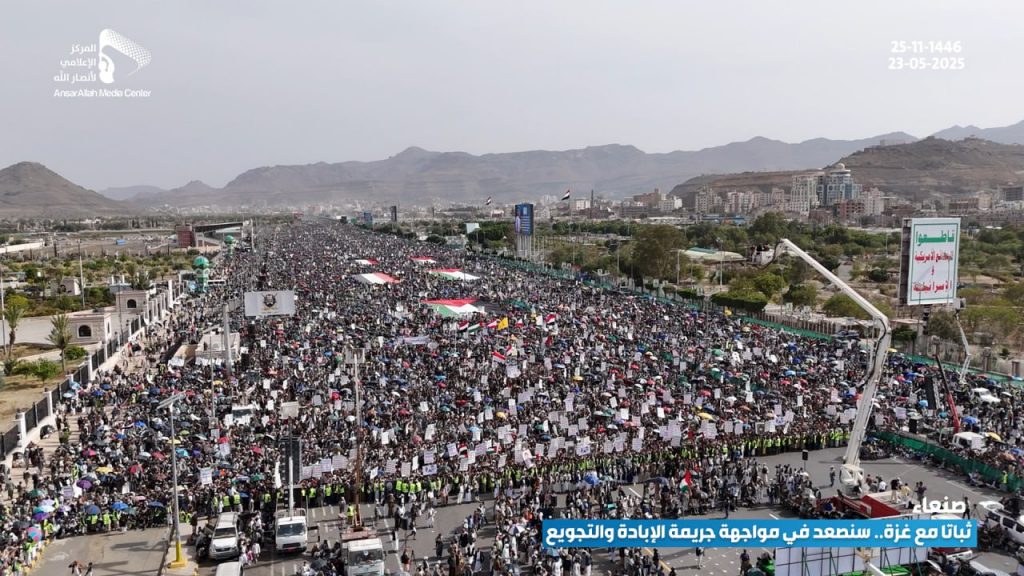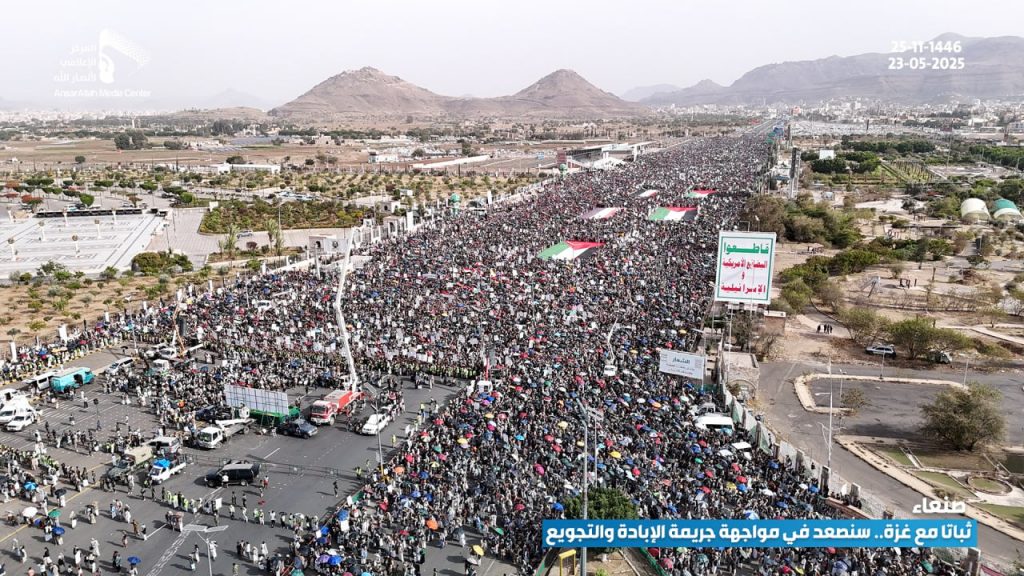 صور جوية/ حشود مليونية في مسيرة “ثباتاً مع غزة.. سنصعد في مواجهة جريمة الإبادة والتجويع” بميدان السبعين