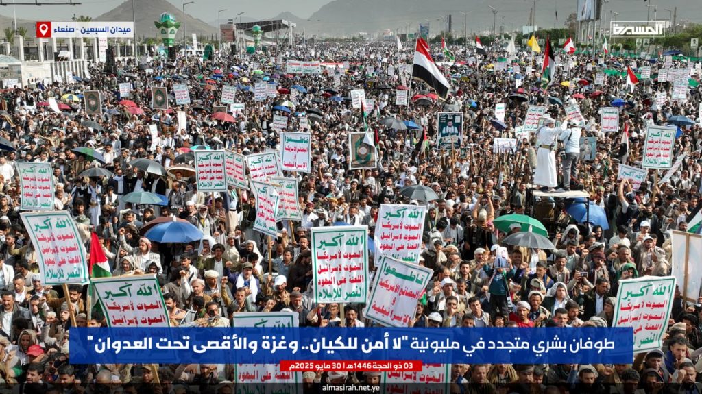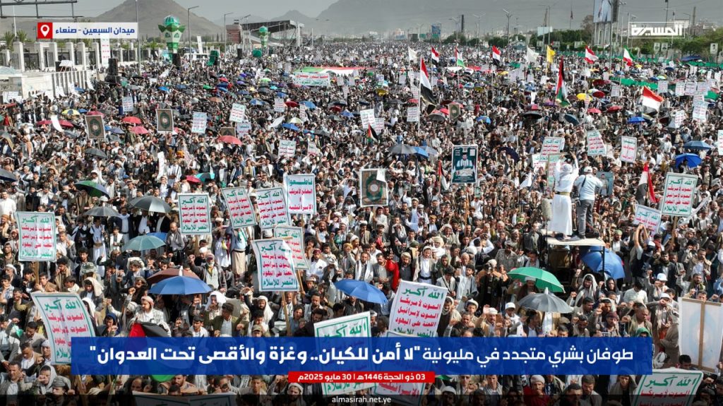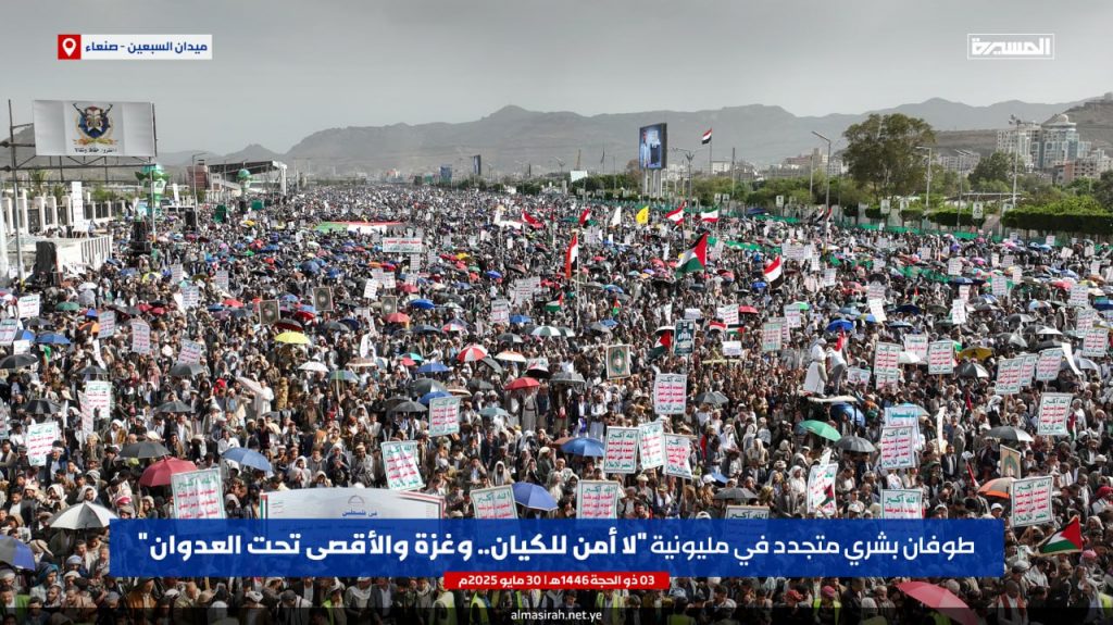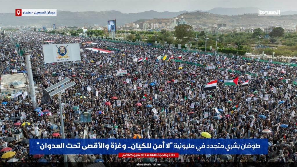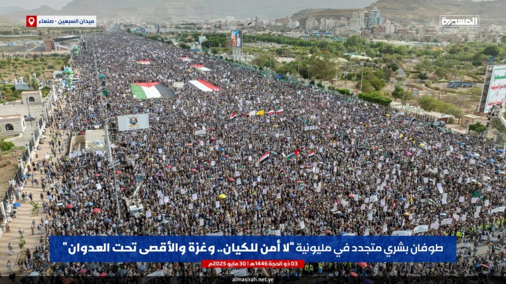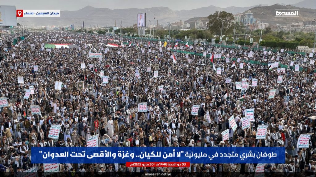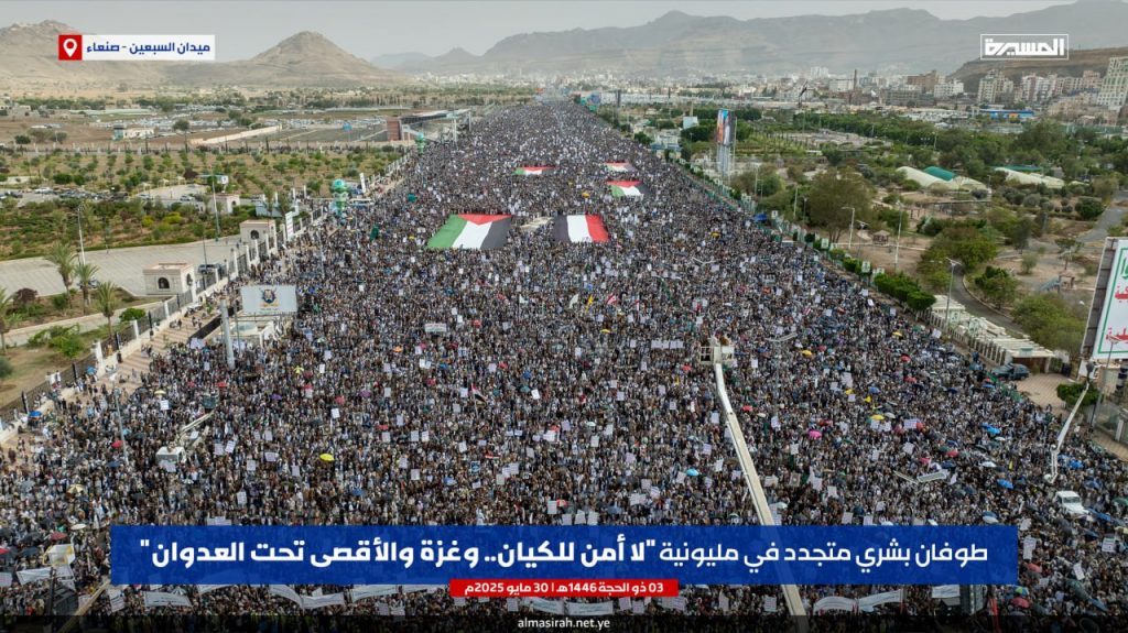 بالصور/ طوفان بشري متجدد في مليونية “لا أمن للكيان.. وغزة والأقصى تحت العدوان” بالعاصمة صنعاء On مايو 30, 2025 الصمود| صور مشاركة