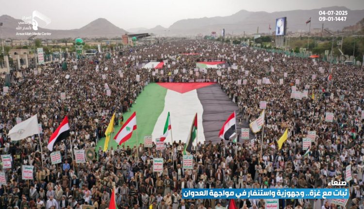 توافد جماهيري كبير إلى ميدان السبعين بالعاصمة صنعاء وساحات المحافظات On يوليو 11, 2025 الصمود/ بدأت الحشود الجماهيرية في التوافد إلى ميدان السبعين في العاصمة صنعاء وساحات المحافظات للمشاركة في مسيرات “نصرة لغزة .. مسيراتنا مستمرة، وعملياتنا متصاعدة”. مشاركة