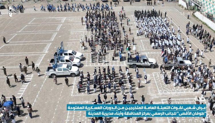 شهد ملعب الشهيد الرئيس صالح الصماد بمركز محافظة حجة اليوم عرضا شعبياً مهيبا لخمسة آلاف مقاتل من قوات التعبئة من خريجي الدورات العسكرية المفتوحة “طوفان الأقصى”.