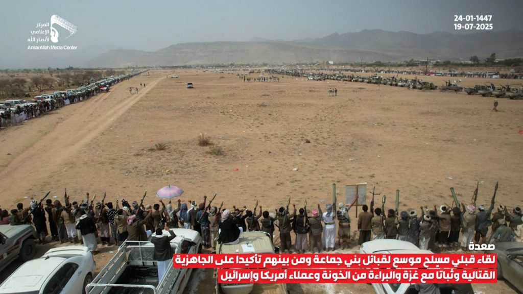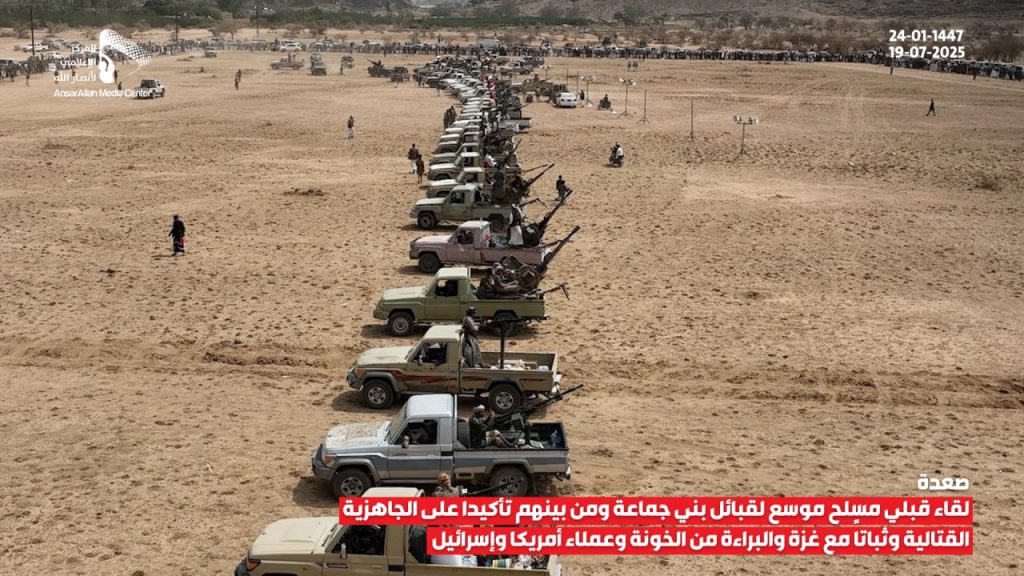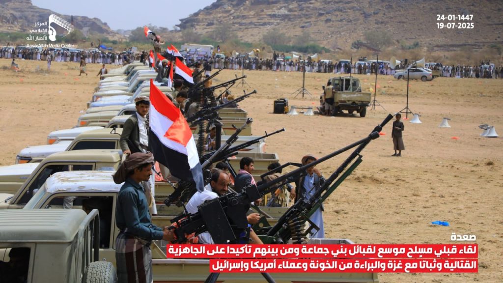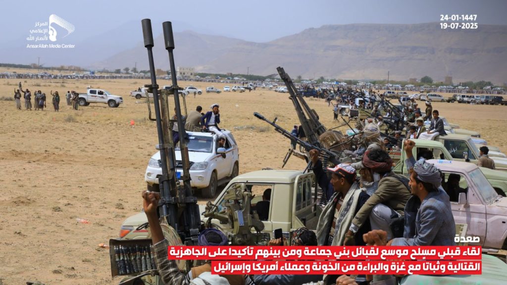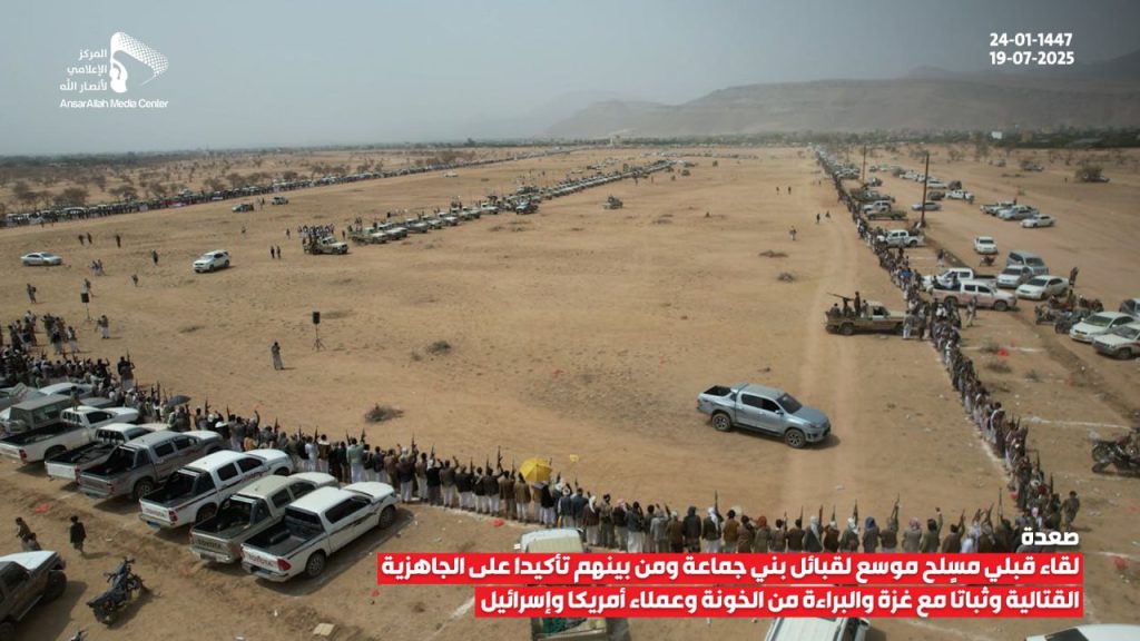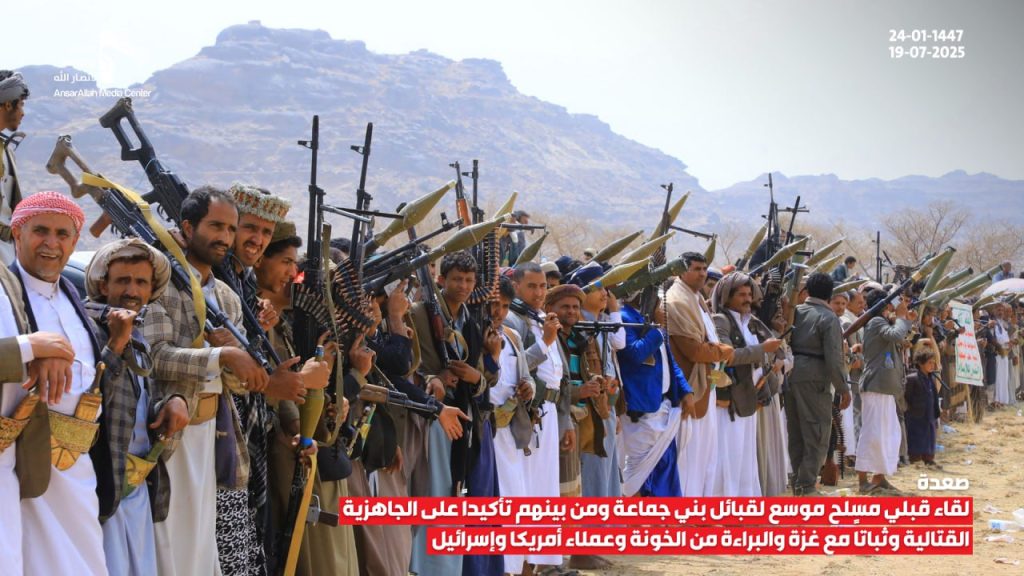 بالصور/ لقاء قبلي مسلح لقبائل بني جماعة بمحافظة صعدة تأكيداً على الجاهزية القتالية وثباتاً مع غزة