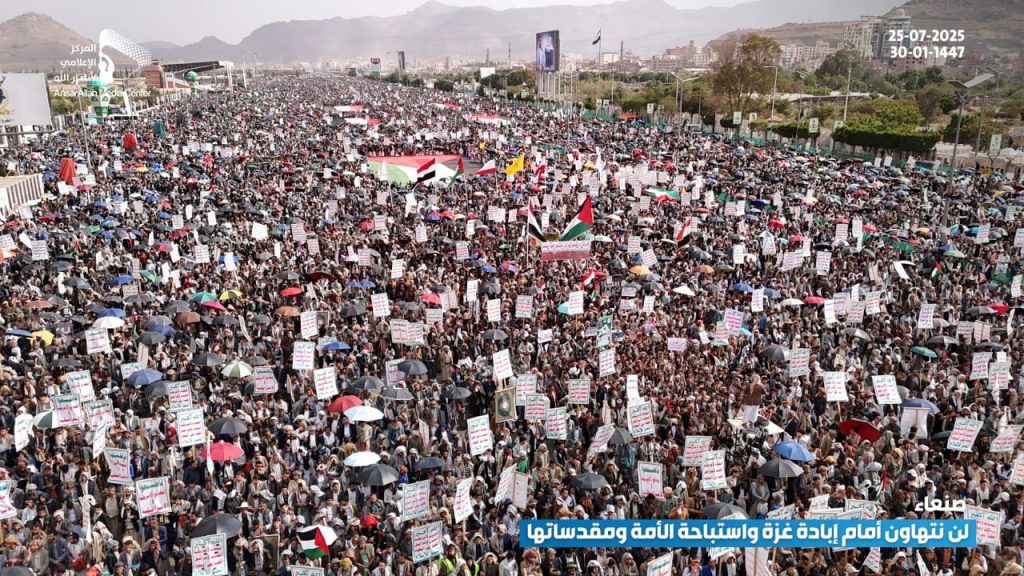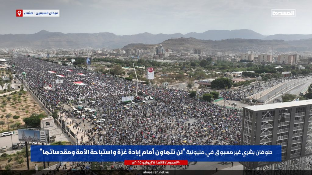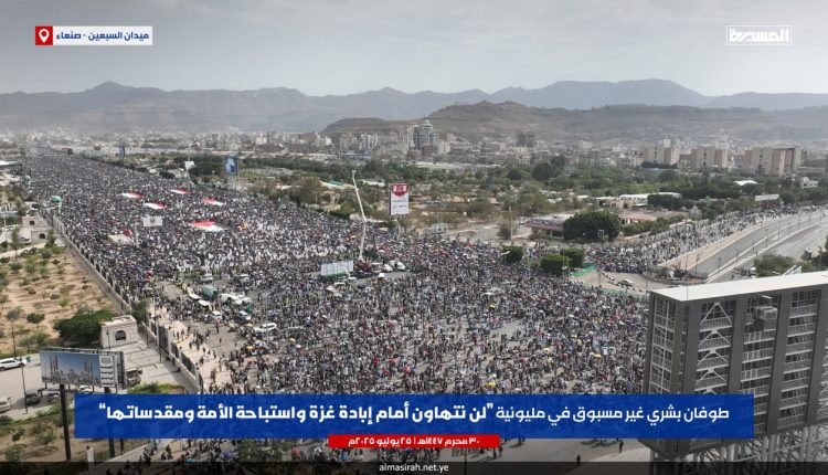 بالصور/ طوفان بشري غير مسبوق في مليونية “لن نتهاون أمام إبادة غزة واستباحة الأمة ومقدساتها” بميدان السبعين في العاصمة صنعاء On يوليو 25, 2025 الصمود/ صور مشاركة