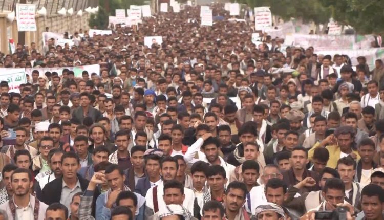 وعبّر بيان المسيرة عن رفضه لسياسة التجويع والتعطيش ضد الشعب الفلسطيني في قطاع غزة، مؤكداً أن هذا الخروج يأتي تأكيداً على أن اليمن لن يترك غزة تموت جوعاً.