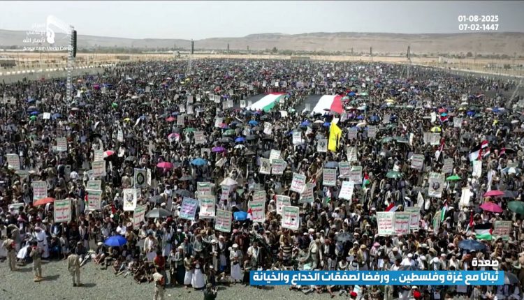 شهدت محافظة صعدة اليوم خروجاً جماهيرياً حاشداً في 42 ساحة بمركز المحافظة والمديريات تحت شعار “ثباتاً مع غزة وفلسطين ورفضاً لصفقات الخداع والخيانة”.