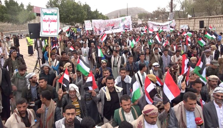 وأضاف “نحن طلاب الجامعات اليمنية نجدّد الدعوة لكل الأنظمة المتخاذلة بفتح ممرات برية لنتمكن من المشاركة المباشرة في نصرة الأشقاء في غزة، كما أكد السيد القائد بأن الشعب اليمني مستعد للتحرك بمئات الآلاف من المقاتلين”.