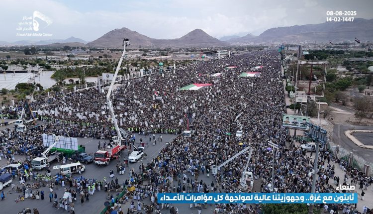 تحت شعار “ثابتون مع غزة.. وجهوزيتنا عالية لمواجهة كل مؤامرات الأعداء”.. طوفان بشري في العاصمة صنعاء