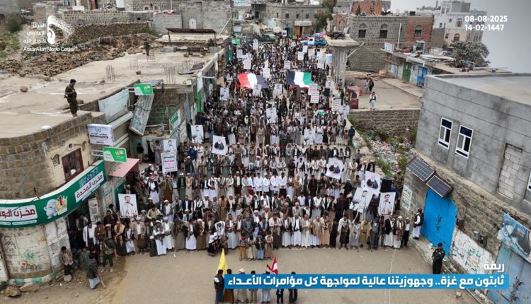 وأكد أبناء ريمة تفويضهم المطلق لقائد الثورة السيد عبدالملك الحوثي، باتخاذ الخيارات اللازمة لردع الكيان الصهيوني، حتى إيقاف العدوان ورفع الحصار على غزة.