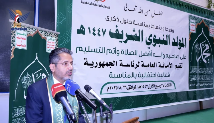 وفي الفعالية أوضح أمين عام رئاسة الجمهورية حسن شرف الدين، أن الاحتفاء بالمولد النبوي ليس للفرح والابتهاج فحسب بل ذكرى للتأمل والاعتبار وربط الماضي المجيد بالحاضر الأليم واستشراف المستقبل المنشود.