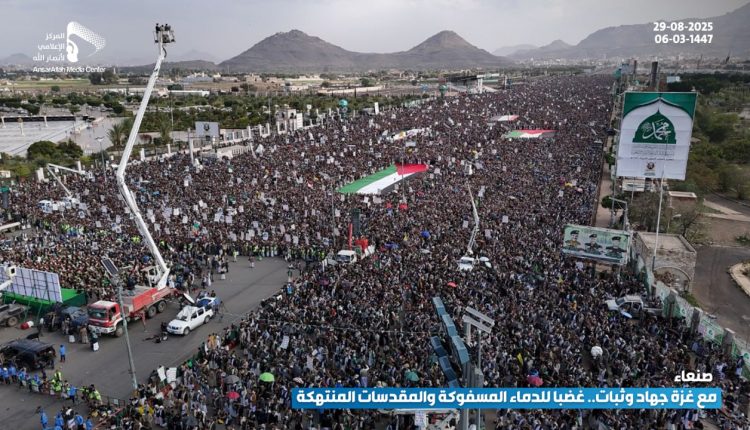 تحت شعار “مع غزة جهاد وثبات.. غضبا للدماء المسفوكة والمقدسات المنتهكة”.. مسيرة مليونية بالعاصمة صنعاء