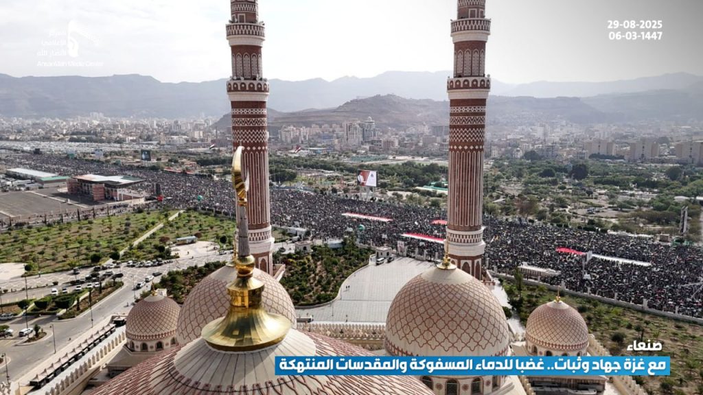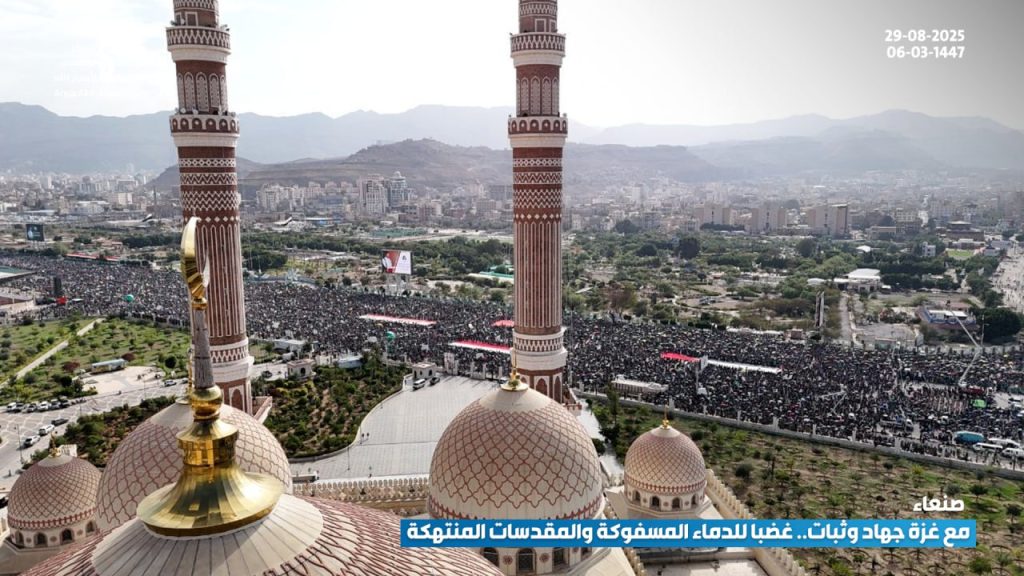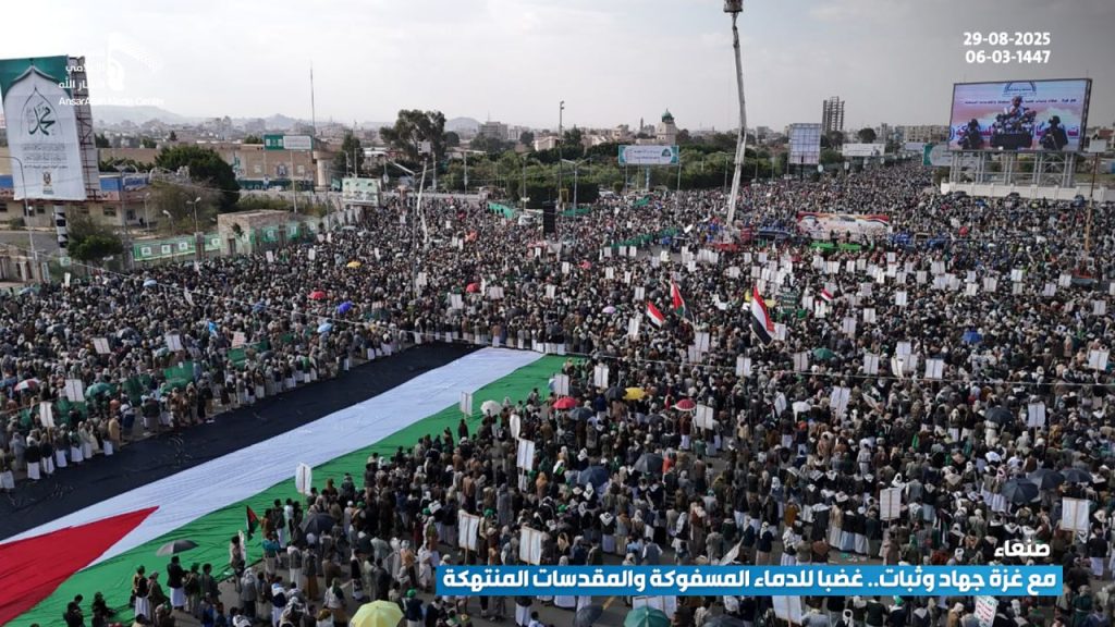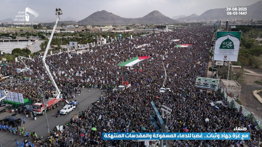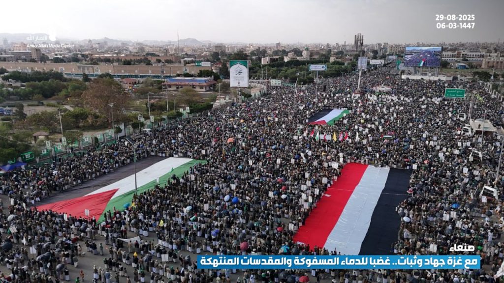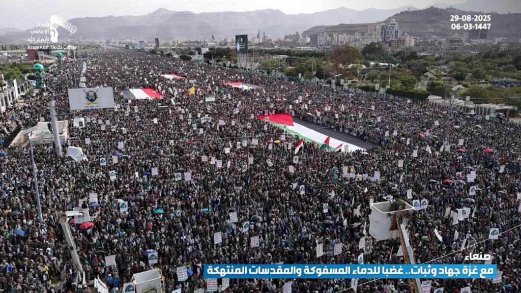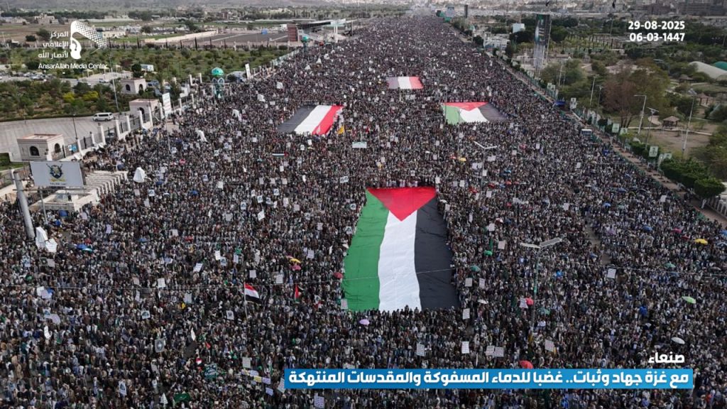 شهدت العاصمة صنعاء اليوم، مسيرة مليونية تحت شعار “مع غزة جهاد وثبات.. غضبا للدماء المسفوكة والمقدسات المنتهكة”، تحدياً للعدو الصهيوني، ونصرة للقرآن والإسلام، وإسناداً ودعماً للشعب الفلسطيني المظلوم.