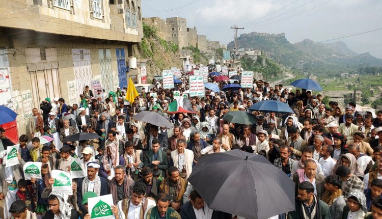 وأكدت الحشود في المسيرات التي تقدمها رئيس اللجنة الرئاسية المكلفة بالتحشيد للمولد النبوي – نائب رئيس مجلس النواب عبدالرحمن الجماعي وأعضاء اللجنة ومحافظ حجة هلال الصوفي وأمين عام محلي المحافظة إسماعيل المهيم ومسؤول التعبئة حمود المغربي، أن القضية الفلسطينية ستظل حاضرة في أولويات الشعب اليمني حتى زوال الكيان الغاصب.