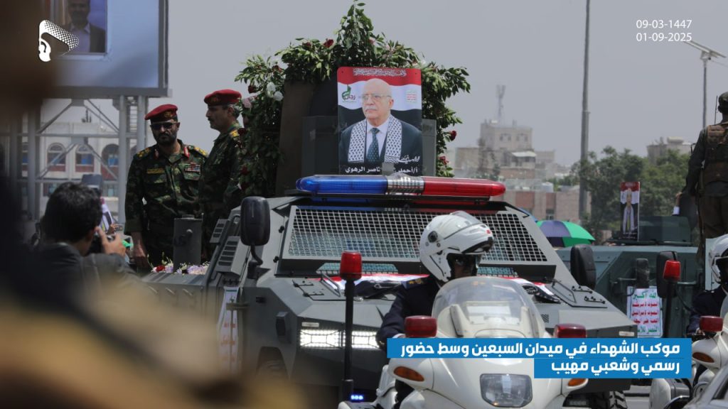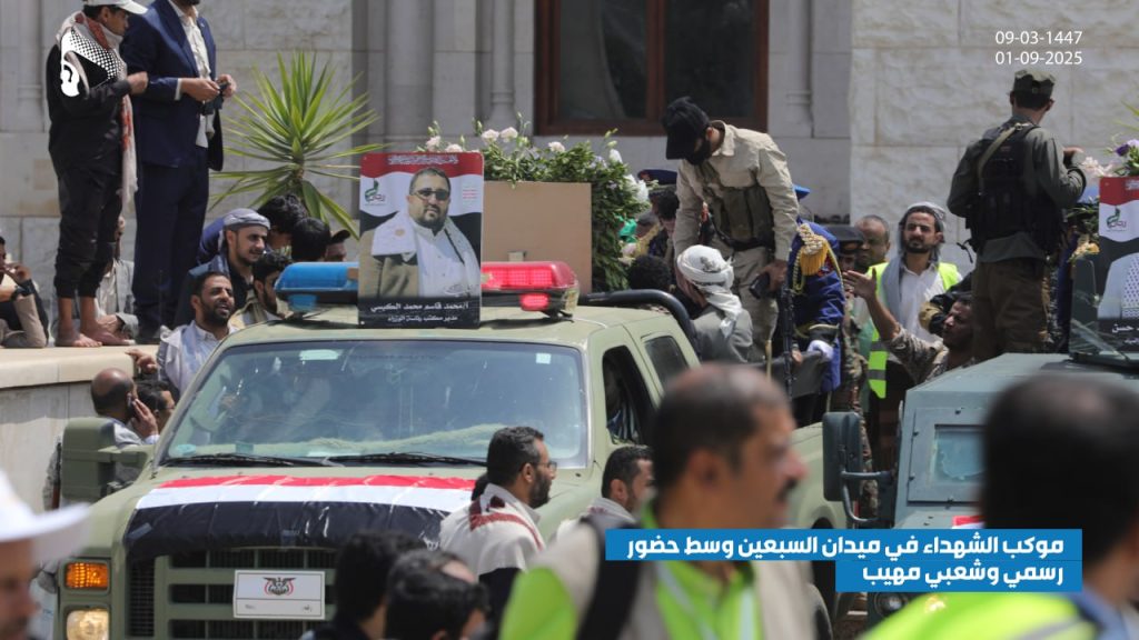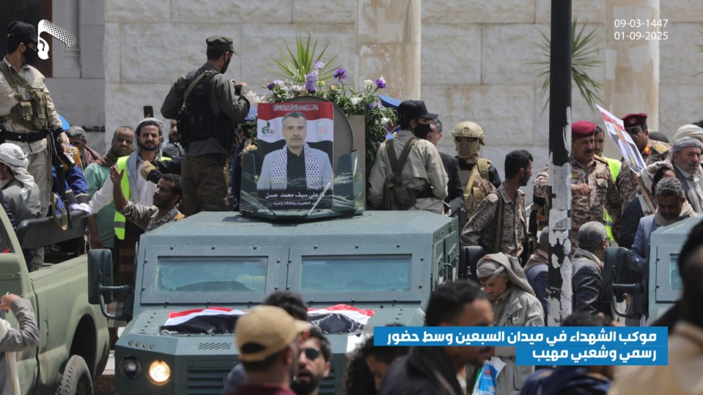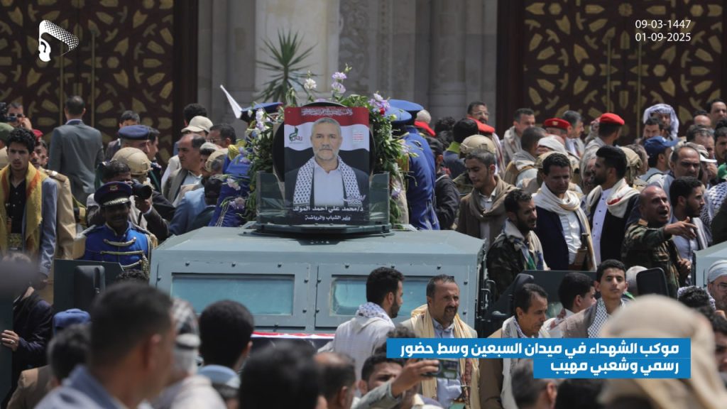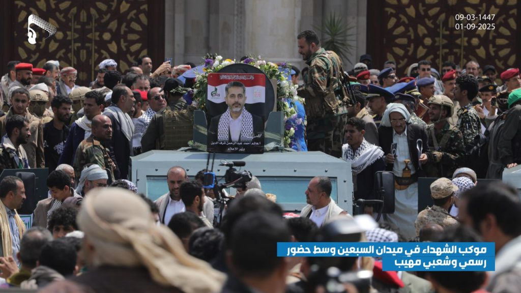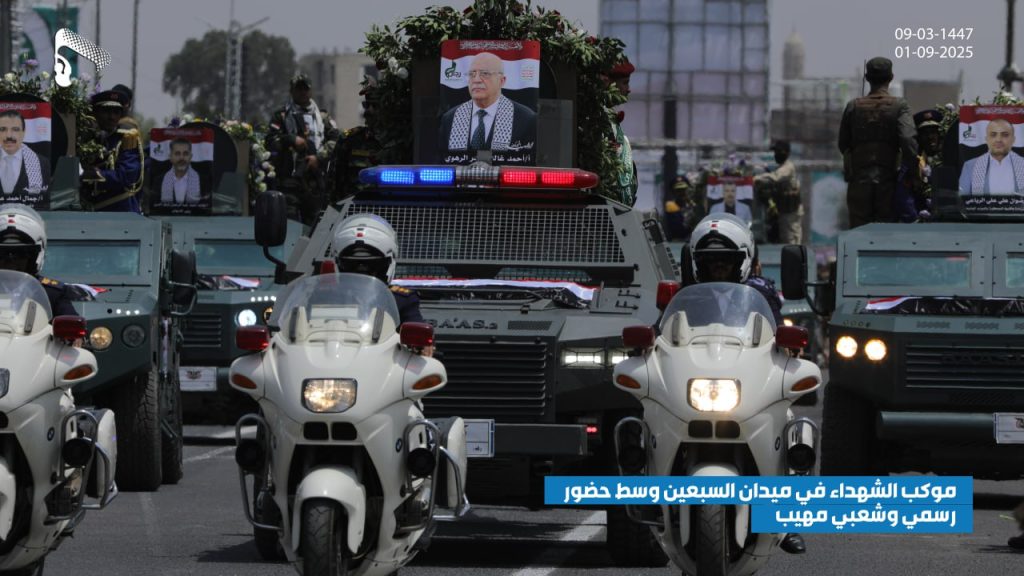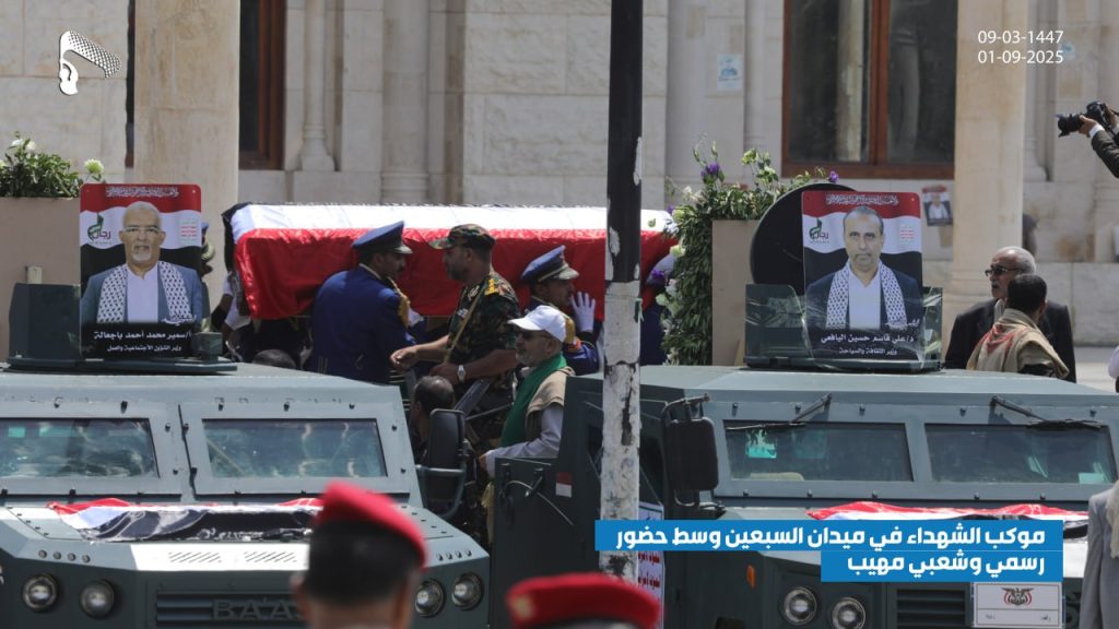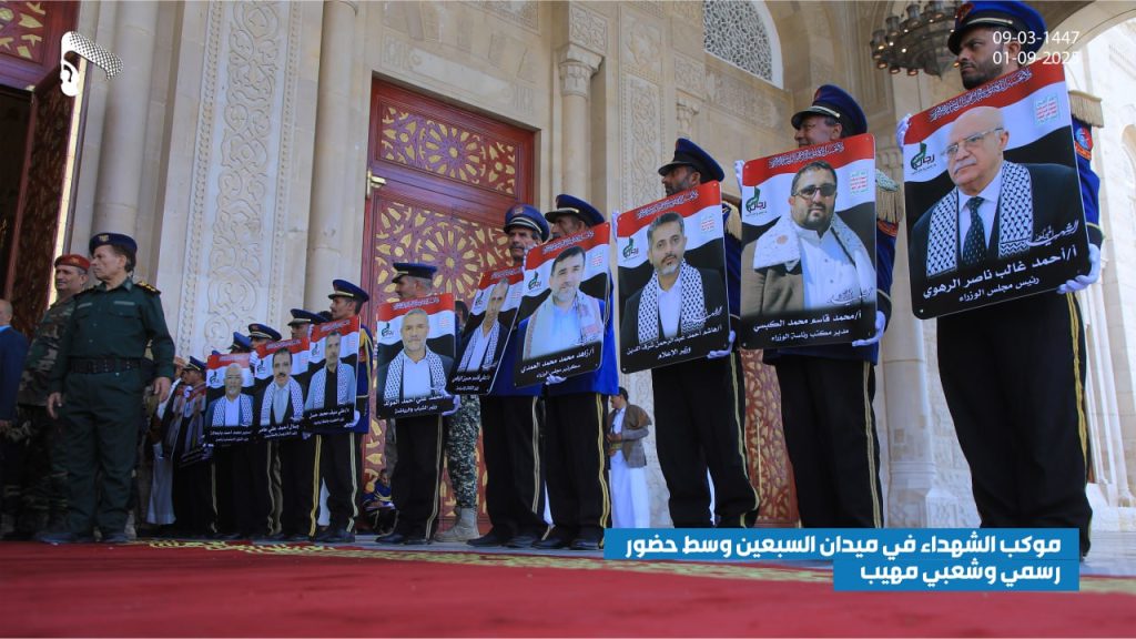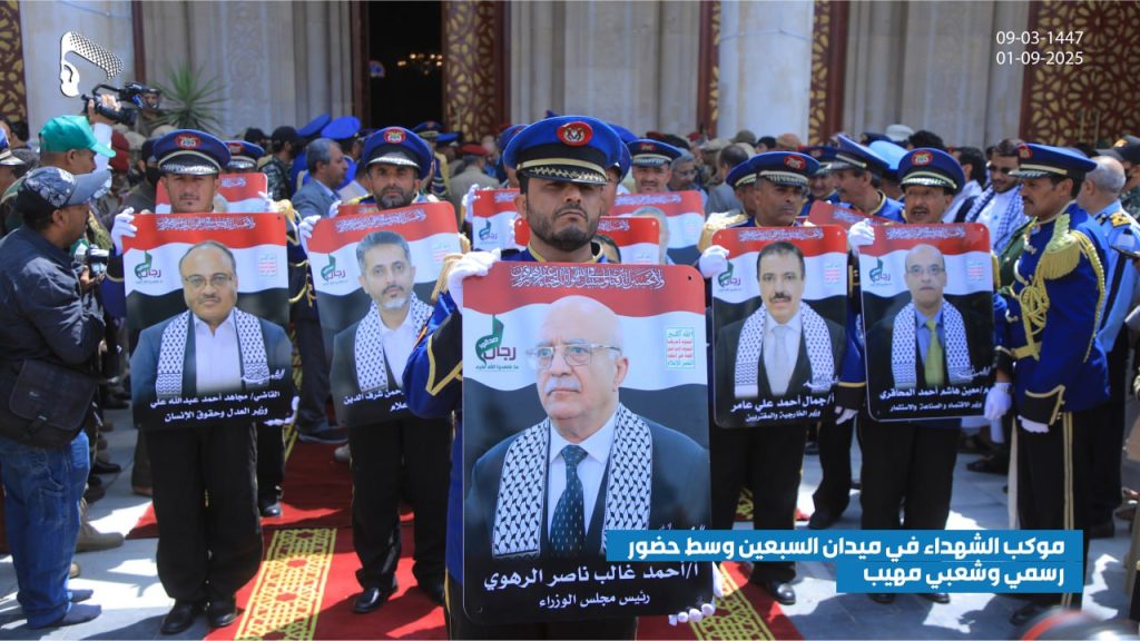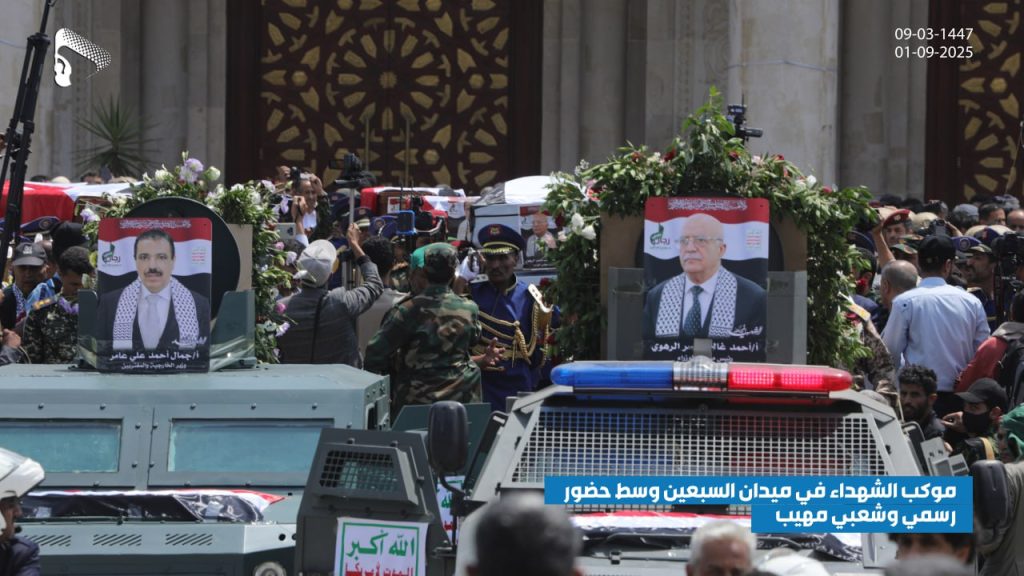 شيّع اليمن في موكب جنائزي مهيب اليوم، شهداء حكومة التغيير والبناء الذين ارتقت أرواحهم في العدوان الإسرائيلي الغادر والجبان الذي استهدفهم يوم الخميس الماضي في العاصمة صنعاء.