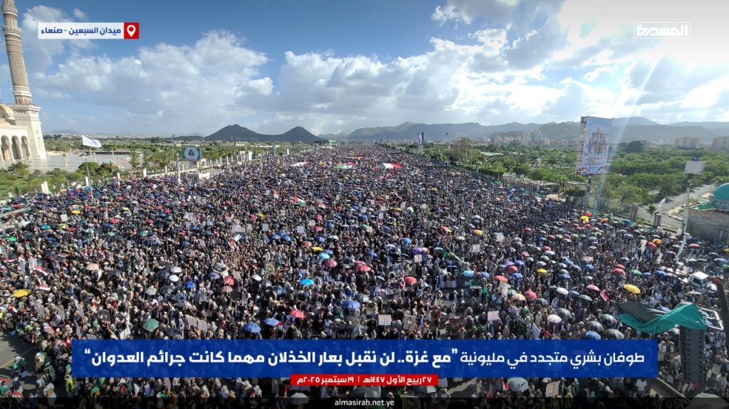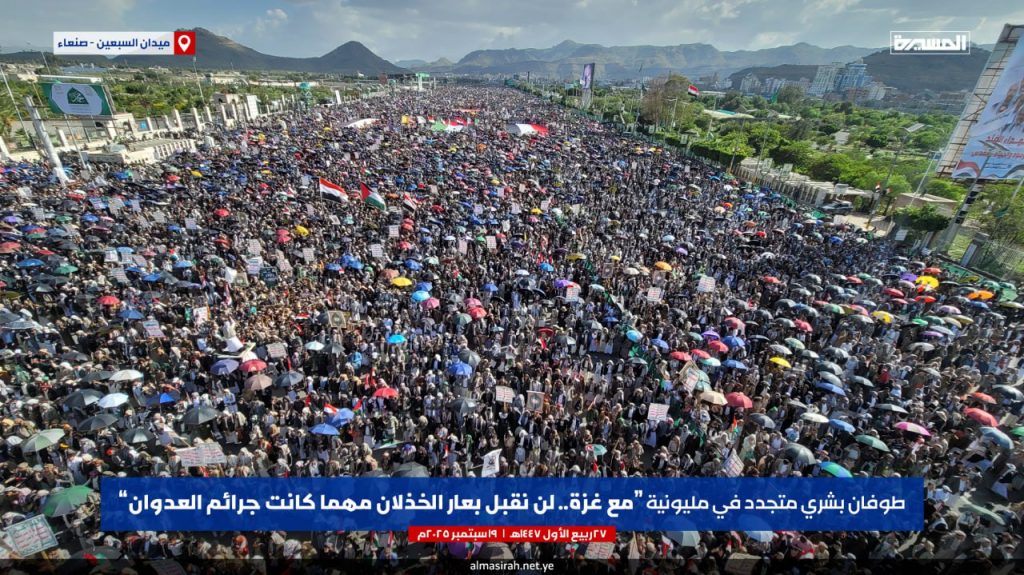 تحت شعار “مع غزة.. لن نقبل بعار الخذلان مهما كانت جرائم العدوان”.. مسيرة مليونية بالعاصمة صنعاء