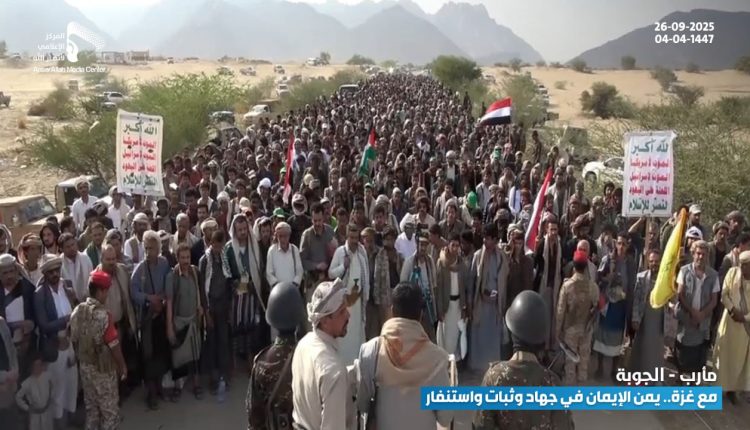 20 مسيرة ووقفة حاشدة بمأرب جهادا وثباتا واستنفار في نصرة غزة ومواجهة أعداء الأمة