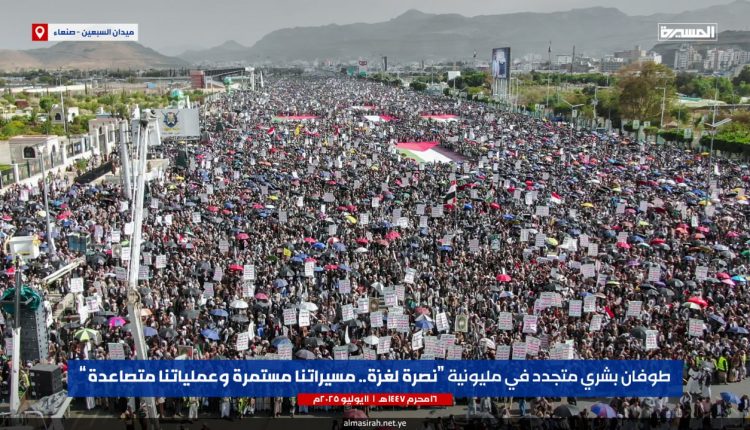 والشعب اليمني على كُـلّ جمعة يخرج إلى الساحات في كُـلّ المدن والمديريات والعزل والقرى إسنادًا لغزة ولكل المجاهدين، لأنهم آمنوا بأن القضية الأولى قضية فلسطين إيمانًا مطلقًا، وترسخ في نفوسهم أن واجبهم الأسمى والأعظم هو مناصرة إخوانهم المظلومين في غزة وكل المستضعفين.