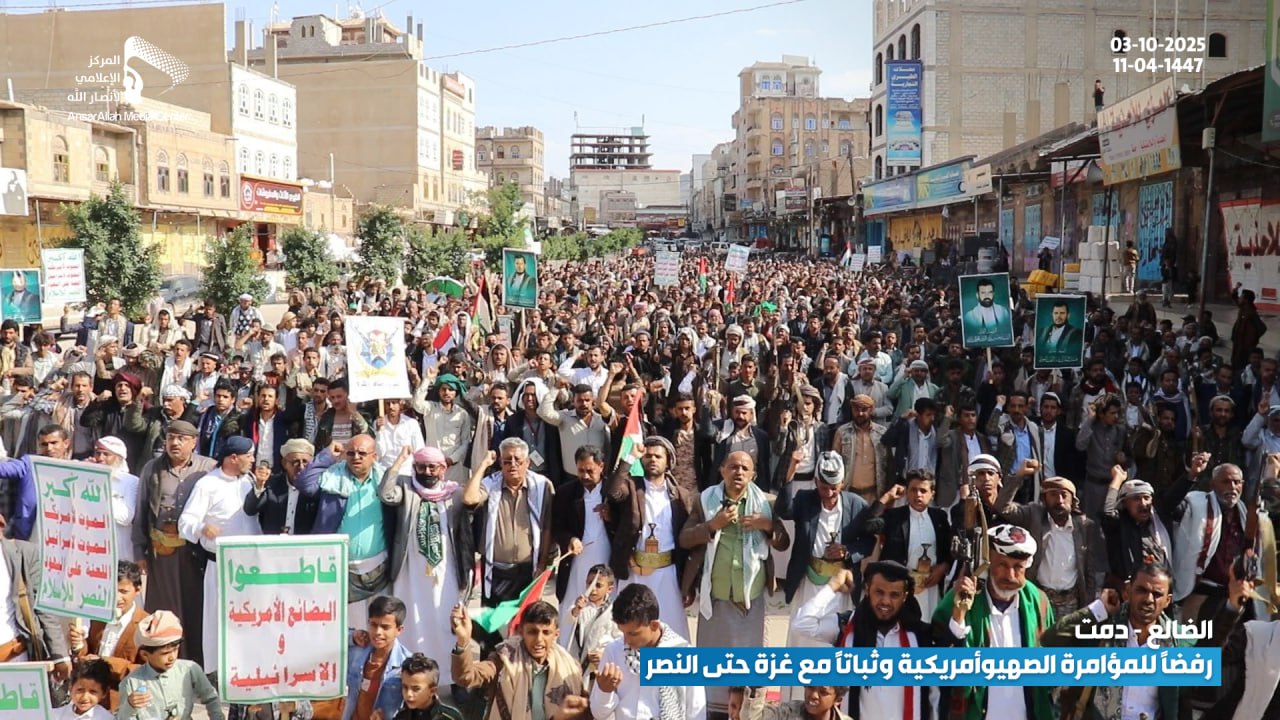 وأوضح بيان صادر عن المسيرات أن الموقف الإيماني للشعب اليمني خالص لوجه الله لا يزداد مع اشتداد المؤامرات إلا صلابة وقوة، وتزداد القناعة بأهمية هذا الموقف كلما تكالب العدو ضد القضية الفلسطينية والمقاومة وضد الأمة.