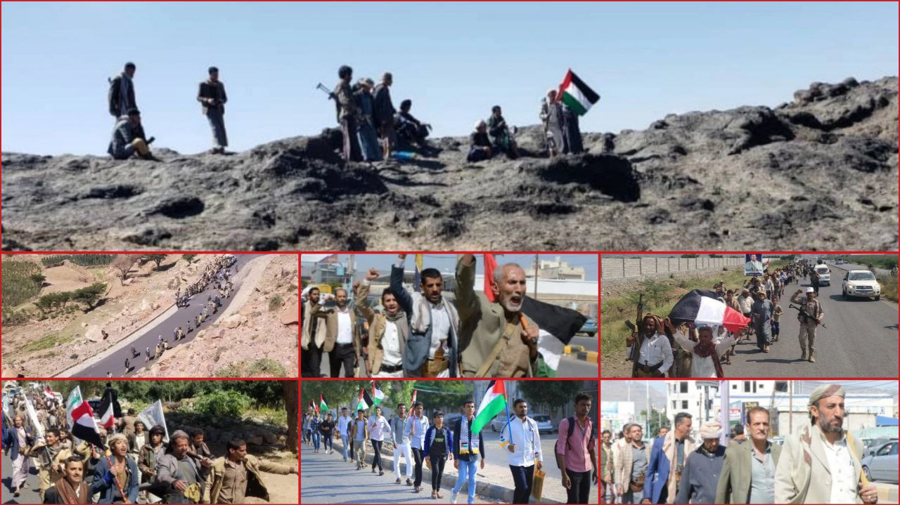 في مشهدٍ مليء بالإصرار والعزيمة والعزة والإيمان، وارتفعت فيه رايات الجهاد والوفاء، تزيّنت ميادين اليمن وقراه هذا اليوم بمسيراتٍ ووقفاتٍ وتطبيقاتٍ قتالية، جسّدت استعداد الشعب لخوض العام الثالث من الطوفان بكل قوة، ما يؤكّـد عمق التلاحم بين الشعب اليمني والقضية الفلسطينية.