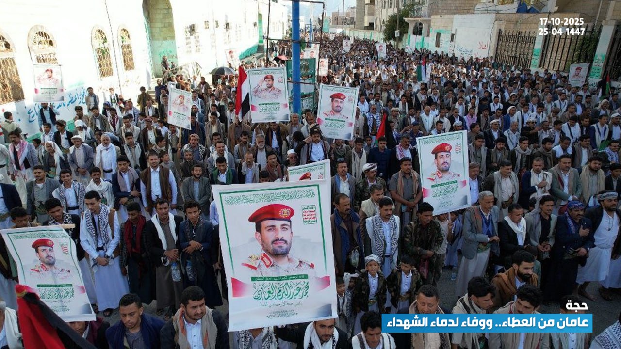 وجدد أبناء حجة التأكيد في المسيرات التي شارك فيها وكلاء المحافظة وشخصيات تنفيذية وتعبوية واجتماعية على السير على درب الشهداء في الدفاع عن الدين والأرض والعرض.