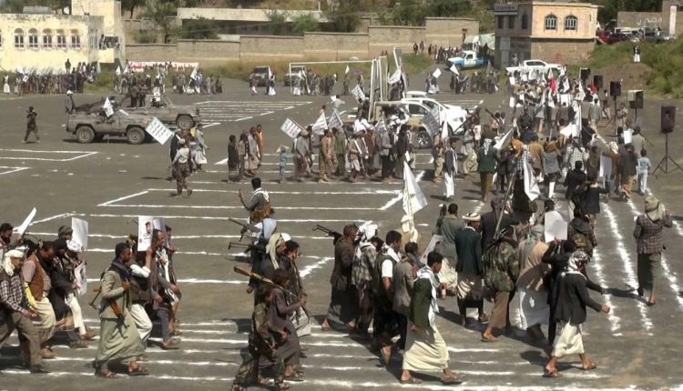 عرض شعبي لخريجي دورات التعبئة العامة في مديرية المخادر بمحافظة إب