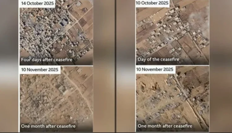 أظهرت صور أقمار صناعية، تدمير جيش العدو الإسرائيلي المئات من المباني في المنطقة التي تخضع لسيطرتها في قطاع غزة، منذ وقف إطلاق النار في 10 أكتوبر الماضي.