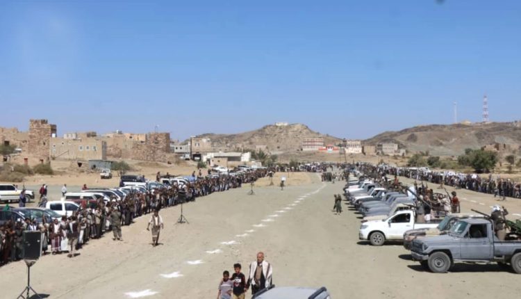 وقفة قبلية مسلحة لأبناء مديريات مربع البيضاء وفاءً للشهداء وتأكيدًا على الجهوزية لمواجهة الأعداء