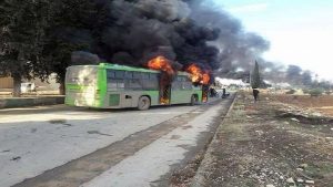 أحرقت الجماعات التكفيرية بسوريا ؛ اليوم الأحد ؛ خمس من الحافلات المخصصة لإجلاء أهالي بلدتي ” كفريا والفوعة ” بريف إدلب .