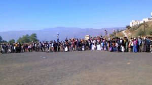 بالصور : ابناء المخادر بإب يعلنون النفير العام للثأر من العدوان