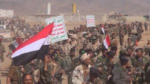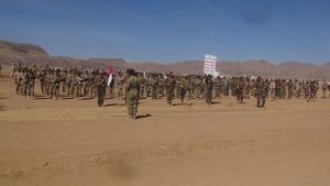 بالصور : عرض عسكري مهيب في مديرية جهران بذمار لإعلان النفير العام ورفد الجبهات بالمقاتلين