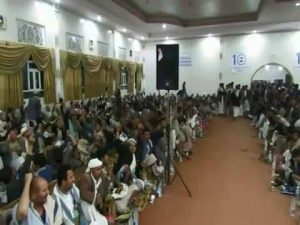 ورحب البيان بدعوة السيد عبد الملك الحوثي لإنعقاد اللقاء لعلماء وحكماء اليمن المزمع انعقاده  في العاشر من رمضان  لتوحيد الجبهة الداخلية في مواجهة العدوان  وصد اى ثغرة يحاول من خلالها العدوان خلخلة الصف الداخلي وتفكيك الجبهة الداخلية لمواجهة ألعدوان .
