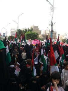 بحضور نسائي مهيب ارتسمت لوحة شموخ وعظمة تجسدت بصورةِ مشاركة ٍفاعلة لحرائر اليمن في شارع الستين الغربي بصنعاء تجلت فيها كل معاني الولاء والوفاء للقضية الفلسطينية وللشعب الفلسطيني في ذكرى احياء يوم القدس العالمي.