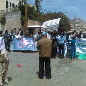 بالصور : وقفة لأهالي الأسرى أمام مقر اللجنة الدولية للصليب الأحمر بصنعاء