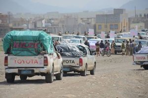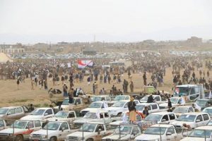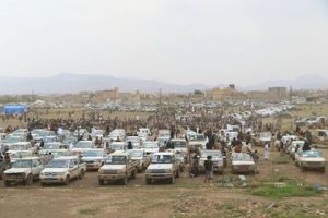 حيث توافدت الحشود الجماهيرية القادمة من مختلف المحافظات للمشاركة في ساحات الاعتصام بمداخل العاصمة صنعاء لمواجهة تصعيد العدوان السعودي الأمريكي.