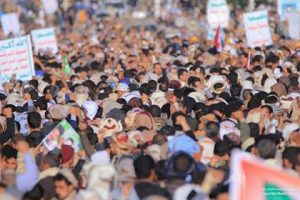 ومن الشعارات التي رددها المحتشدون “نرفض دول الاستكبار”.. نرفض ذل الاستعمار”.