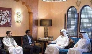 تداول ناشطون في مواقع التواصل الاجتماعية، صورة لنجل زعيم المليشيات، أحمد علي عبدالله صالح، أثناء لقاء جمعه بمحمد بن زايد ولي عهد أبو ظبي، أحد قادة العدوان على اليمن.