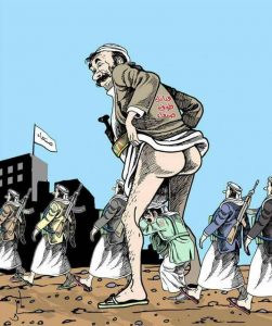 أولا نعتذر للقراء الكرام اعادة نشر هذا الكاريكاتير السيء والذي يعكس أخلاق منفذه ومموله ومن يعمل له .