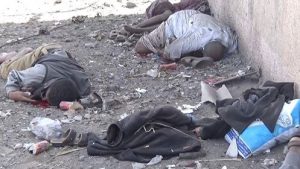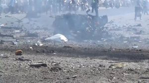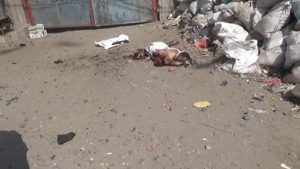 مشاهد مؤلمة جداً لجريمة العدوان الوحشية على سوق شعبي بالحديدة