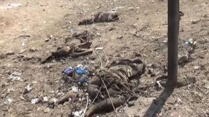 حصل موقع الصمود على صور للمجزرة الوحشية التي ارتكبها طيران العدوان السعودي الامريكي بعد ضهر يومنا السبت على سوق شعبي في مديرية الجراحي بمحافظة الحديدة سقط على إثرها اكثر من 20 مواطن بين شهيد وجريح كحصلية ليست نهائية.