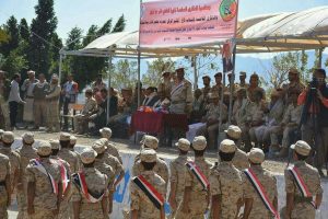 شاهد الصور من داخل معسكر الخيامي أثناء العرض العسكري للمرتزقة وبعد استهدافه بصاروخ باليستي