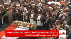 يشارك كل من رئيس المجلس السياسي الأعلى مهدي المشاط ورئيس الثورية العليا محمد علي الحوثي شخصياً وكذا مجموعة كبيرة من قيادات الدولة المدنية والعسكرية وحشود الشعب اليمني في مراسيم تشييع شهيد الوطن الكبير الرئيس صالح علي الصماد ورفاقة رضوان الله عليهم أجمعين .